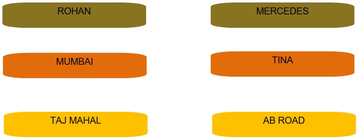 Examples: Rohan, Pune, Mumbai, Yamuna