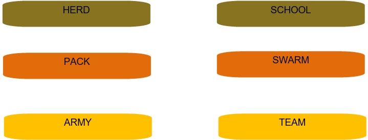 Examples: herd, flock, army, team