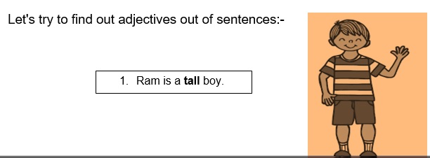 Adjectives are words which tell us about the preceding noun in a sentence.