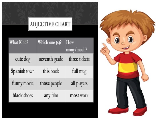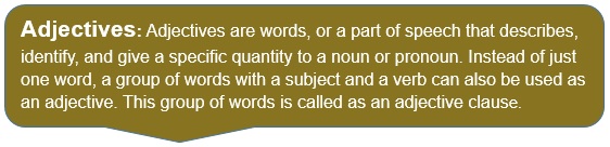 Descriptive adjectives are the most common types of adjectives. These adjectives are used to tell about the quality or kind of the noun or pronoun they are referring to.