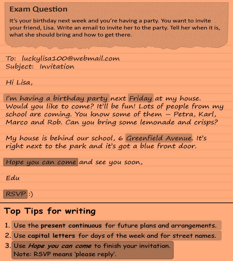 Spoken and Written Expressions: The process of acquiring a broad understanding of, and look for specific information in short texts like messages, invitations, etc.