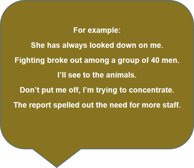 For instance, in the first example, the phrasal verb ‘to look down on someone’ doesn’t mean that you are looking down from a higher place at someone who is below you; it means that you think that you are better than someone.