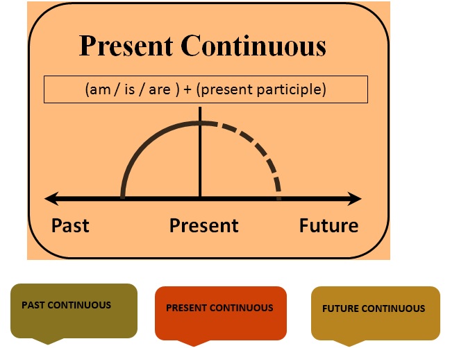 For example, “I am eating.", “I was eating" and “I will be eating"
